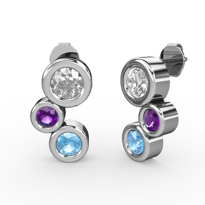 Akuamarin, pırlanta ve ametist 14 ayar beyaz altın küpe (1.84 karat)