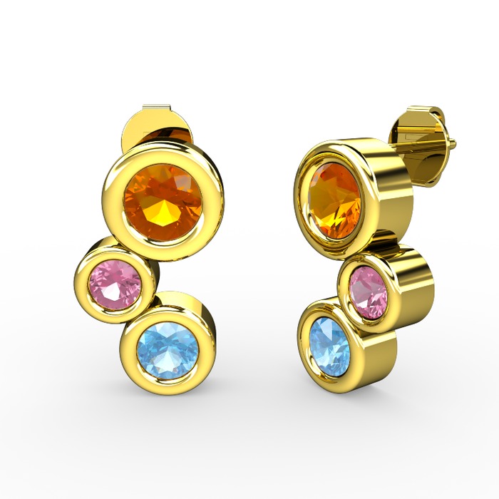 Akuamarin, sitrin ve pembe kuvars 925 ayar altın kaplama gümüş küpe