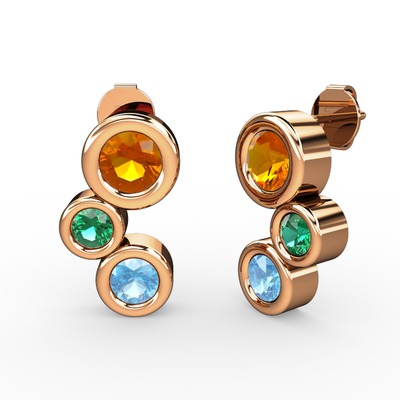 Akuamarin, sitrin ve yeşil kuvars 8 ayar rose altın küpe
