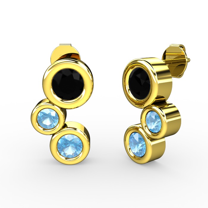 Akuamarin ve siyah zirkon 18 ayar altın küpe