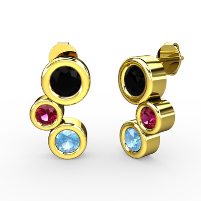 Akuamarin, siyah zirkon ve rodolit garnet 925 ayar altın kaplama gümüş küpe