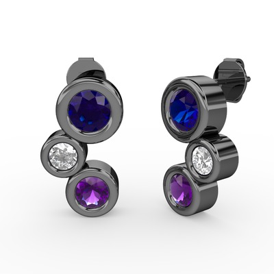 Ametist, lab safir ve beyaz zirkon 925 ayar siyah rodyum kaplama gümüş küpe