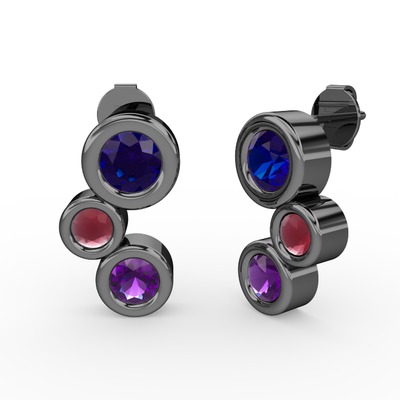 Ametist, lab safir ve kök yakut 925 ayar siyah rodyum kaplama gümüş küpe
