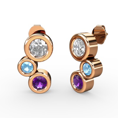 Ametist, pırlanta ve akuamarin 925 ayar rose altın kaplama gümüş küpe (1.84 karat)