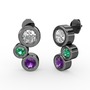 Ametist, pırlanta ve yeşil kuvars 925 ayar siyah rodyum kaplama gümüş küpe (1.84 karat)