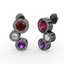 Ametist, rodolit garnet ve beyaz zirkon 925 ayar siyah rodyum kaplama gümüş küpe