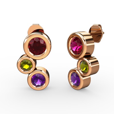 Ametist, rodolit garnet ve peridot 14 ayar rose altın küpe
