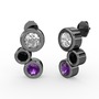 Ametist, swarovski ve siyah zirkon 925 ayar siyah rodyum kaplama gümüş küpe