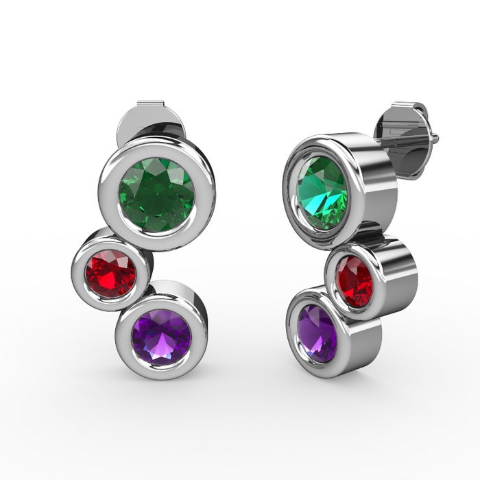 Ametist, yeşil kuvars ve garnet 18 ayar beyaz altın küpe