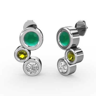 Beyaz zirkon, kök zümrüt ve peridot 925 ayar gümüş küpe