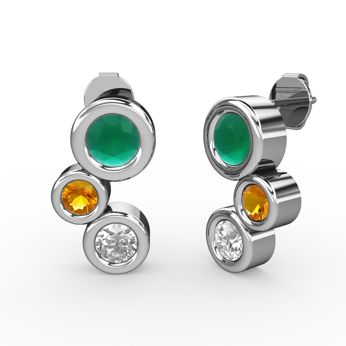 Beyaz zirkon, kök zümrüt ve sitrin 8 ayar beyaz altın küpe