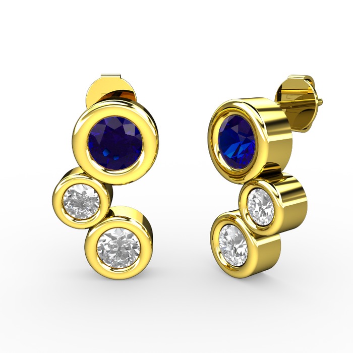Beyaz zirkon ve lab safir 14 ayar altın küpe
