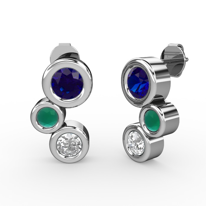 Beyaz zirkon, lab safir ve kök zümrüt 925 ayar gümüş küpe