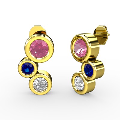 Beyaz zirkon, pembe kuvars ve lab safir 14 ayar altın küpe