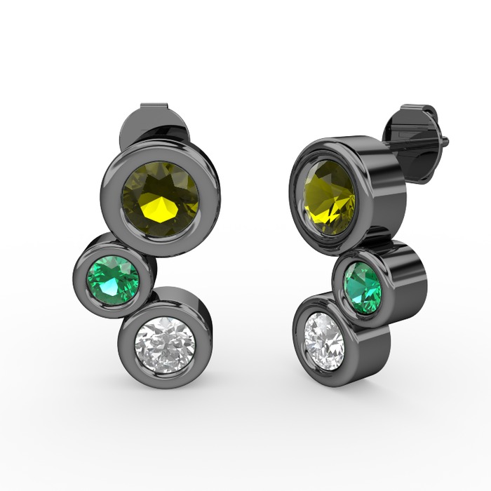 Beyaz zirkon, peridot ve yeşil kuvars 925 ayar siyah rodyum kaplama gümüş küpe