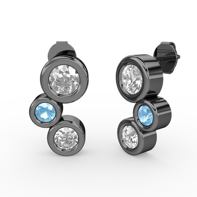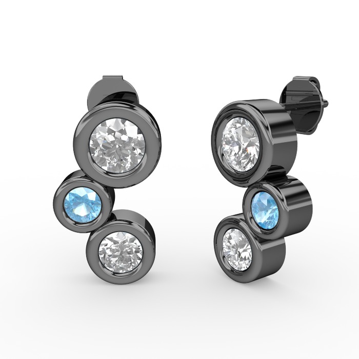 Beyaz zirkon, pırlanta ve akuamarin 925 ayar siyah rodyum kaplama gümüş küpe (1.84 karat)