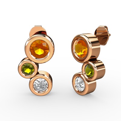 Beyaz zirkon, sitrin ve peridot 925 ayar rose altın kaplama gümüş küpe