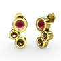 Dumanlı kuvars ve kök yakut 14 ayar altın küpe