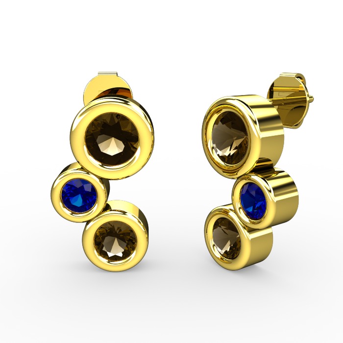 Dumanlı kuvars ve lab safir 925 ayar altın kaplama gümüş küpe