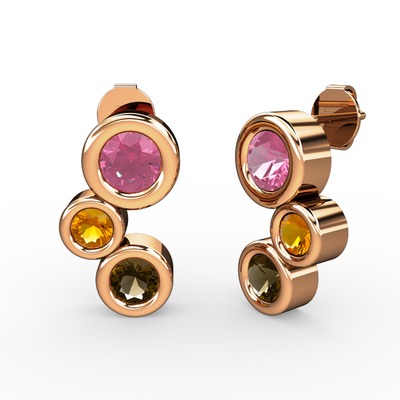 Dumanlı kuvars, pembe kuvars ve sitrin 14 ayar rose altın küpe