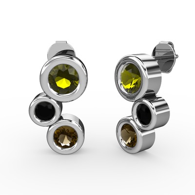 Dumanlı kuvars, peridot ve siyah zirkon 14 ayar beyaz altın küpe