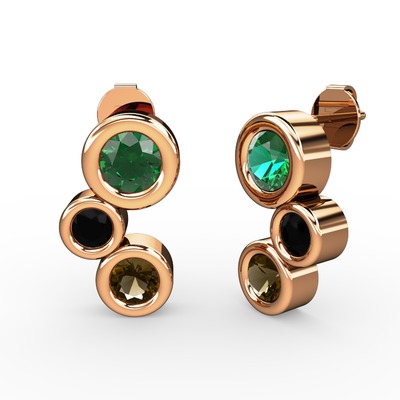 Dumanlı kuvars, yeşil kuvars ve siyah zirkon 14 ayar rose altın küpe