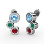 Garnet, akuamarin ve kök zümrüt 8 ayar beyaz altın küpe