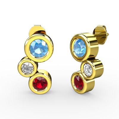 Garnet, akuamarin ve pırlanta 18 ayar altın küpe (0.48 karat)