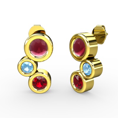 Garnet, kök yakut ve akuamarin 18 ayar altın küpe