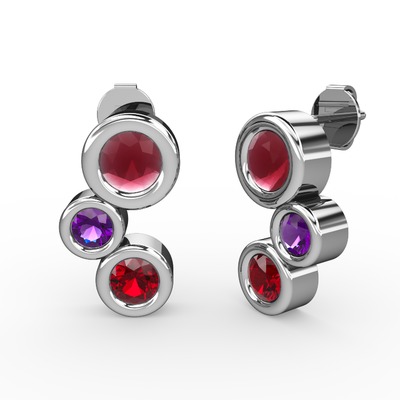 Garnet, kök yakut ve ametist 14 ayar beyaz altın küpe