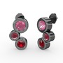 Garnet, pembe kuvars ve kök yakut 925 ayar siyah rodyum kaplama gümüş küpe
