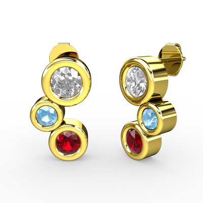 Garnet, pırlanta ve akuamarin 14 ayar altın küpe (1.84 karat)