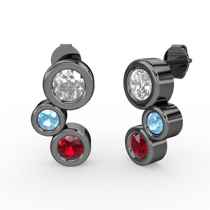 Garnet, pırlanta ve akuamarin 925 ayar siyah rodyum kaplama gümüş küpe (1.84 karat)