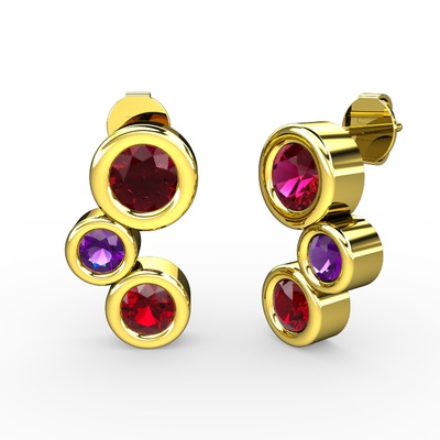 Garnet, rodolit garnet ve ametist 18 ayar altın küpe
