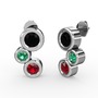 Garnet, siyah zirkon ve yeşil kuvars 8 ayar beyaz altın küpe