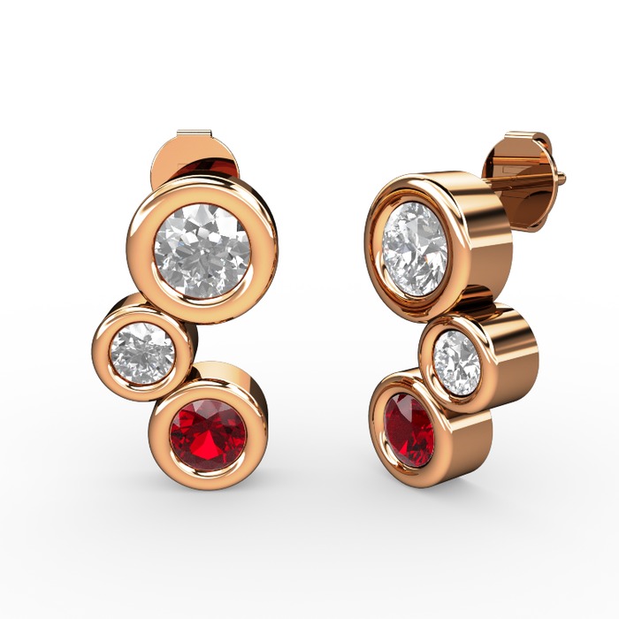 Garnet, swarovski ve pırlanta 8 ayar rose altın küpe (0.48 karat)