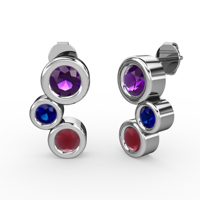 Kök yakut, ametist ve lab safir 14 ayar beyaz altın küpe