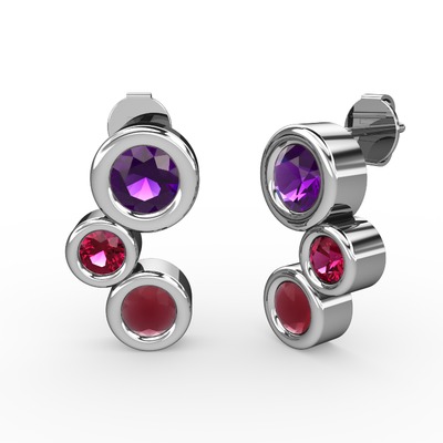 Kök yakut, ametist ve rodolit garnet 8 ayar beyaz altın küpe