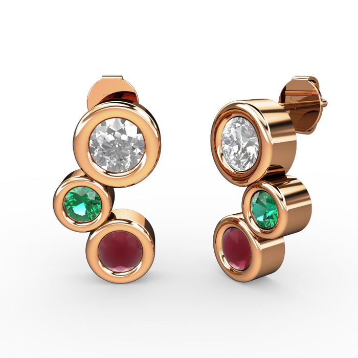 Kök yakut, beyaz zirkon ve yeşil kuvars 8 ayar rose altın küpe