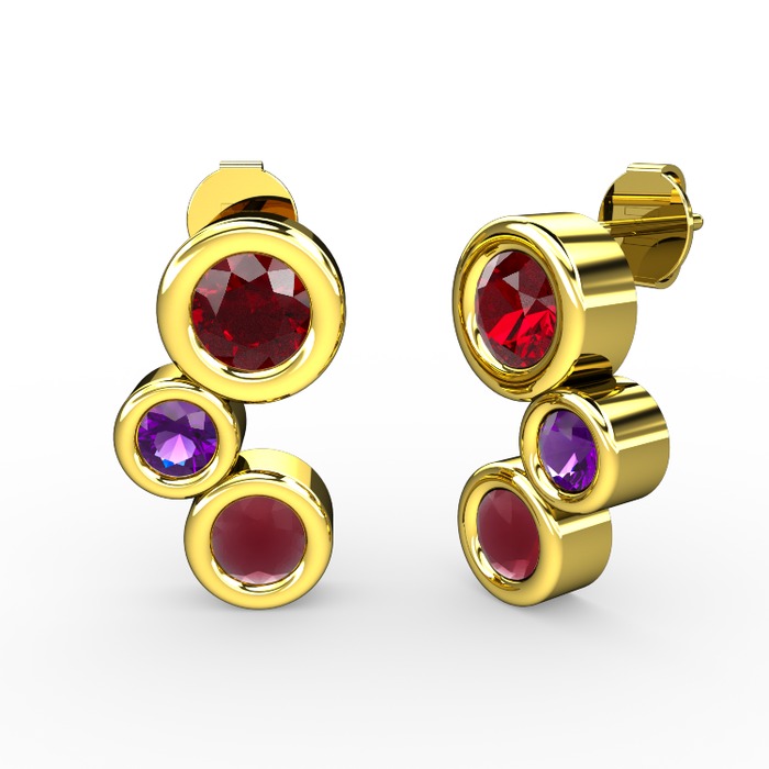 Kök yakut, garnet ve ametist 18 ayar altın küpe
