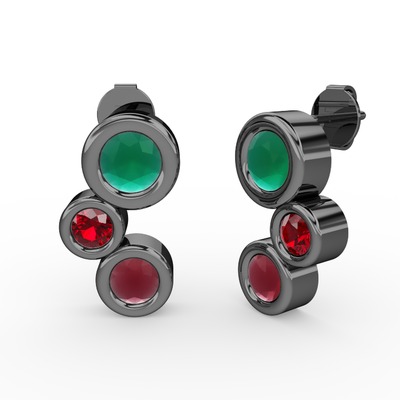 Kök yakut, kök zümrüt ve garnet 925 ayar siyah rodyum kaplama gümüş küpe