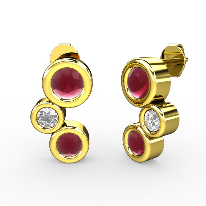 Kök yakut ve pırlanta 18 ayar altın küpe (0.48 karat)