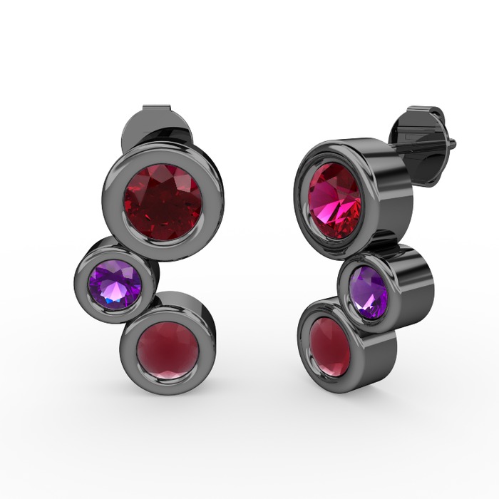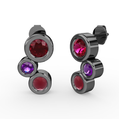 Kök yakut, rodolit garnet ve ametist 925 ayar siyah rodyum kaplama gümüş küpe