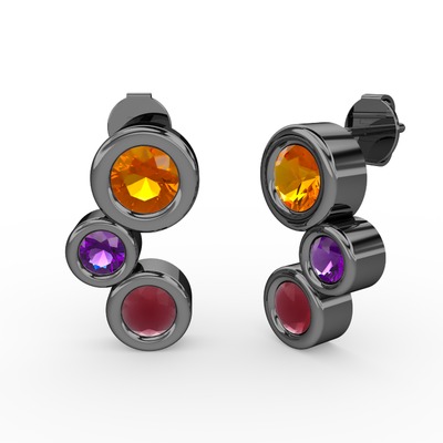 Kök yakut, sitrin ve ametist 925 ayar siyah rodyum kaplama gümüş küpe