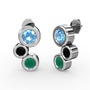 Kök zümrüt, akuamarin ve siyah zirkon 8 ayar beyaz altın küpe