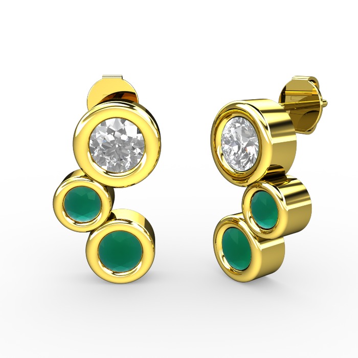 Kök zümrüt ve beyaz zirkon 18 ayar altın küpe