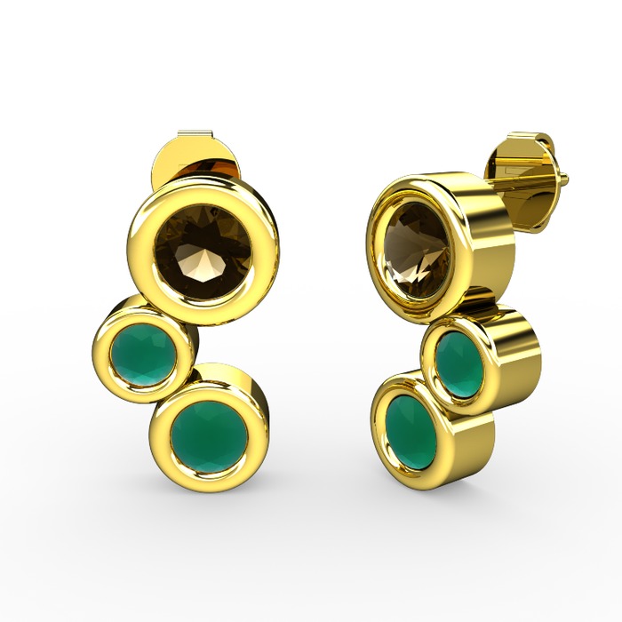 Kök zümrüt ve dumanlı kuvars 8 ayar altın küpe