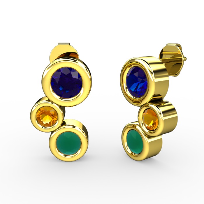Kök zümrüt, lab safir ve sitrin 8 ayar altın küpe