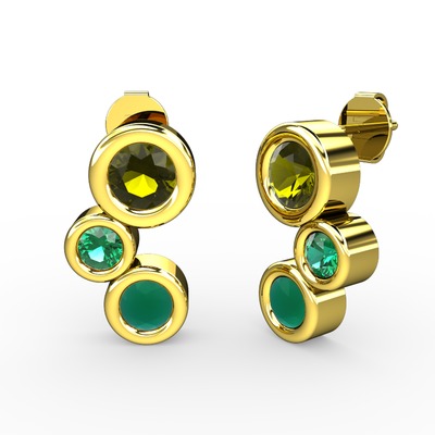 Kök zümrüt, peridot ve yeşil kuvars 925 ayar altın kaplama gümüş küpe