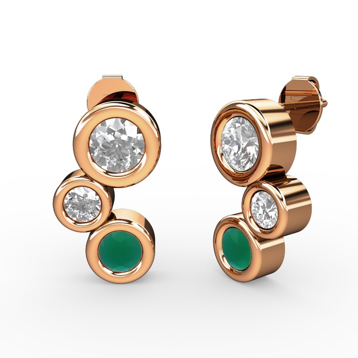 Kök zümrüt, pırlanta ve beyaz zirkon 925 ayar rose altın kaplama gümüş küpe (1.84 karat)
